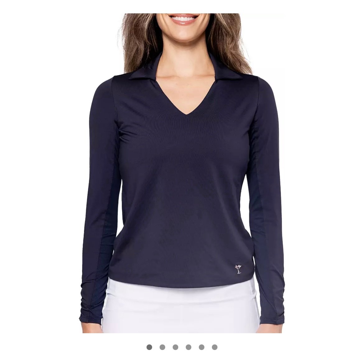 The best selling Lisa Polo just got better with a brand new design. The long sleeve leases for Polo uses a fabulous soft material with a four way stretch for sport or leisure. The two ply fabric in the front. Is designed for a smooth and flattering fit. The rushing at the sleeve gives a flattering feminine touch. Great for golf, tennis or anything in between. New on website lists for $118 mo