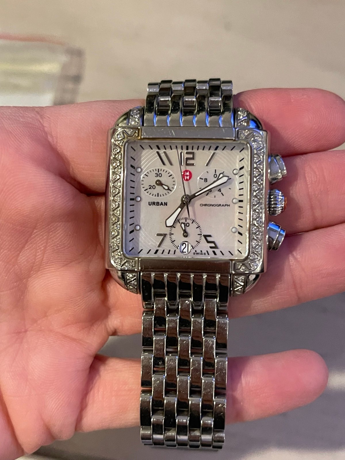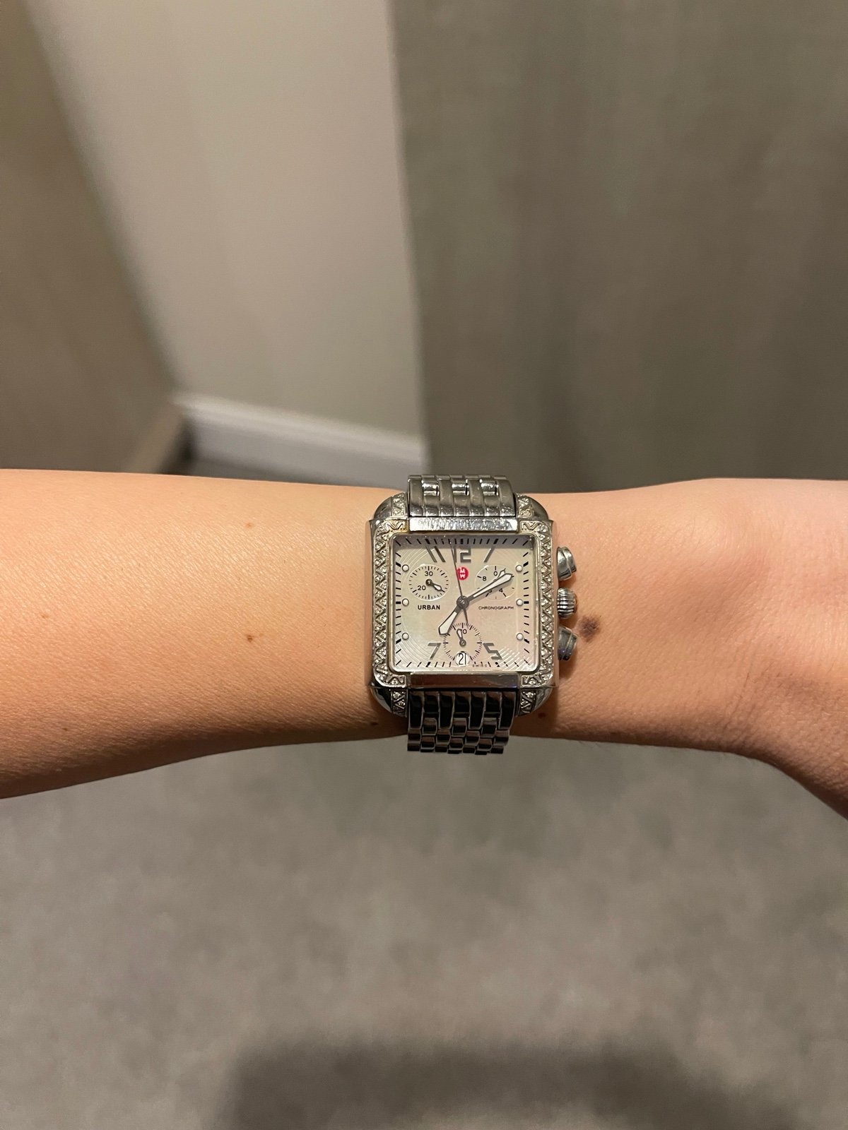 Introducing the Michele Urban Diamond & Stainless Steel Watch. A watch with an assortment of diamonds.