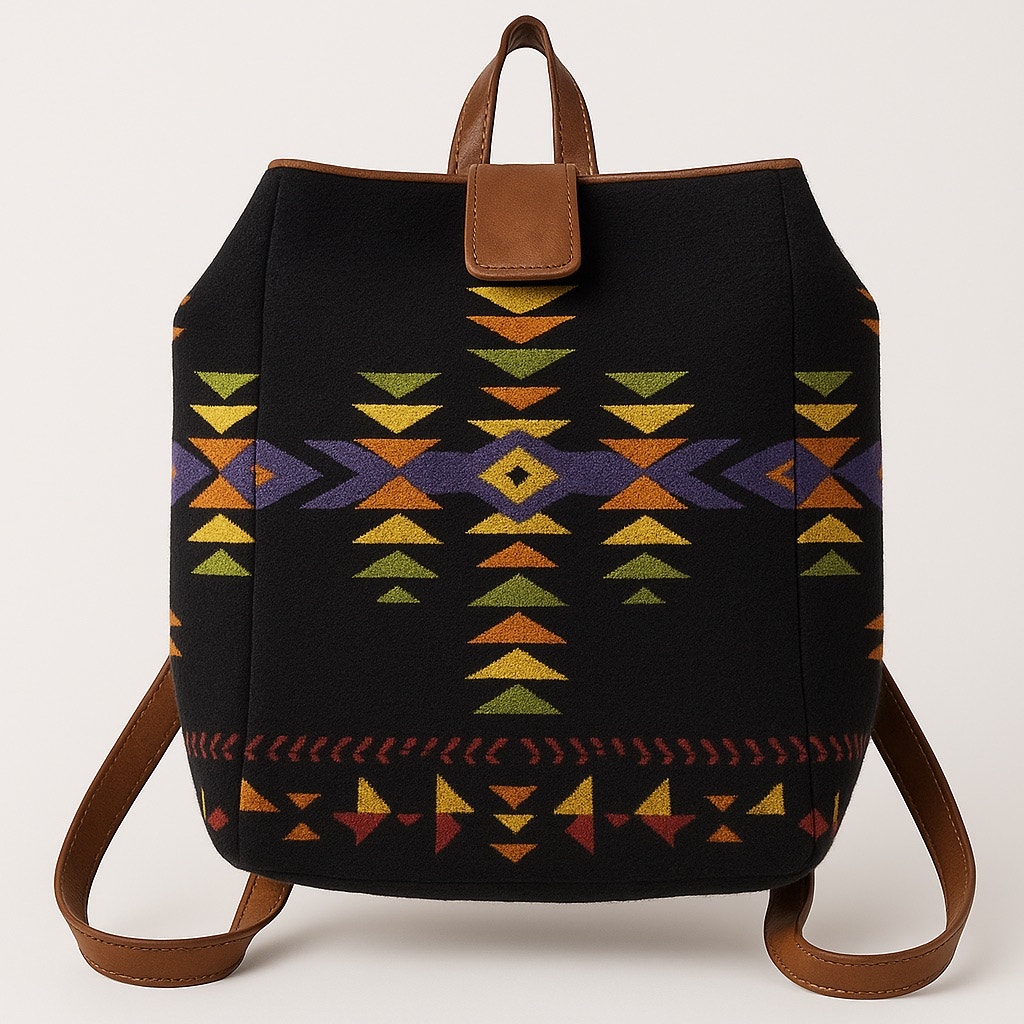 Pendleton Aztec Southwestern Black Backpack Leather Shoulder Straps One Size