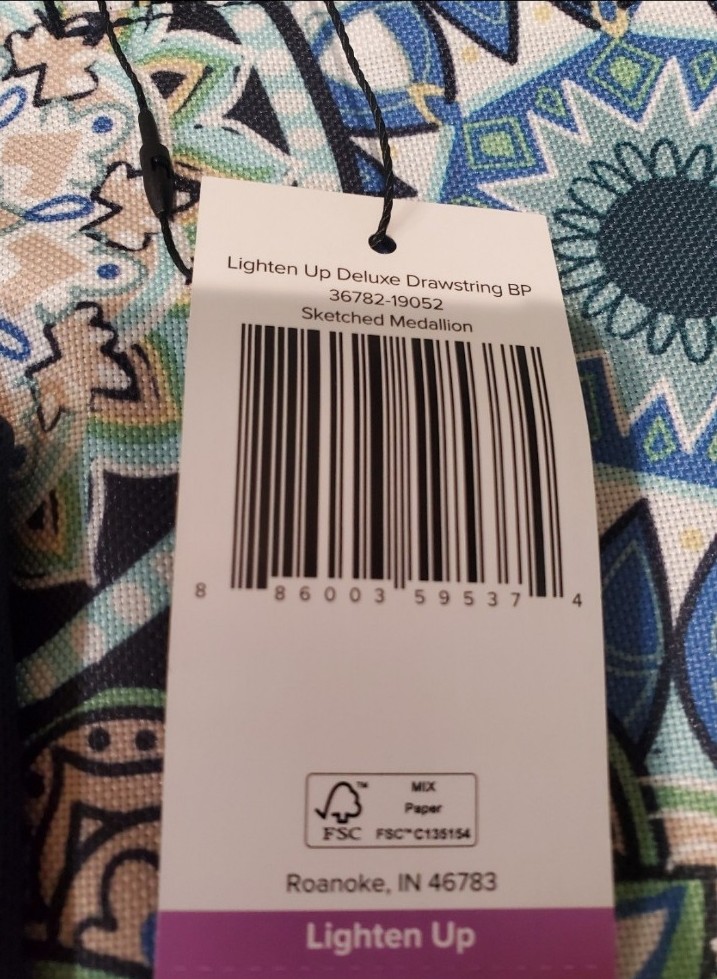 Vera Bradley Lighten Up Drawstring Bag. New with tags. Sketched Medallion pattern. Interior and exterior zip compartments. 2 mesh slip in side pockets. Lightweight shoulder straps. Measures 15x18x2.25". Perfect for the pool, gym, sports events, travel, etc. Smoke and pet free home.